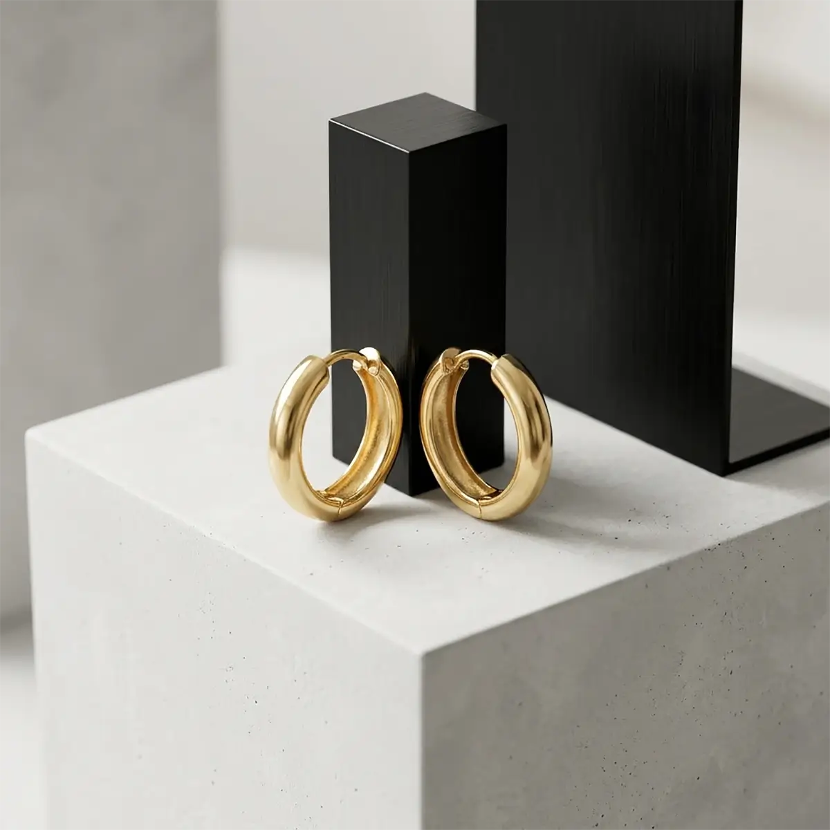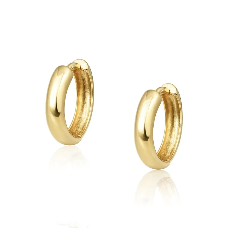 Podkreśl swoją elegancję z naszymi klasycznymi kolczykami kółkami typu huggie. Ta ponadczasowa biżuteria to harmonijne połączenie tradycyjnego jubilerstwa z nowoczesną technologią. Wykonane z wysokiej jakości srebra próby 925, zostały pokryte złote dzięki kąpieli zanurzeniowej. Unikalna warstwa palladu pod złoceniem zapewnia dodatkową trwałość powłoki i głębię koloru. Gładka, lśniąca tafla o szerokości 3,5mm spektakularnie odbija światło, oferując luksusowy wygląd złotej biżuterii w zdecydowanie niższej cenie srebra.